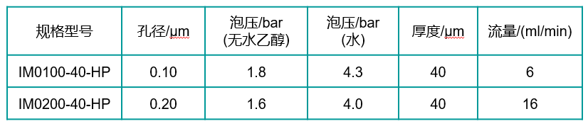 永久親水性,耐有機溶劑、強酸、強堿 可干態儲存 高通量,高截留率 【應用領域】 可應用于制藥,醫療,微電子等行業的水性料液過濾。尤其適合高腐蝕性的水性溶劑等的過濾分離 【規格選型表】