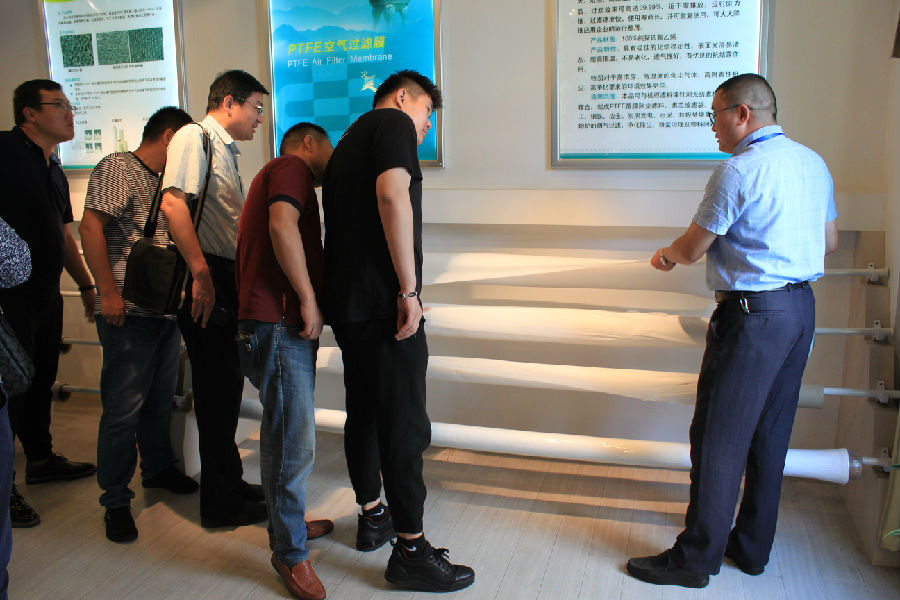 8月17日,清華大學(xué)環(huán)境總裁班學(xué)員一行四十余人來(lái)浙江格爾泰斯環(huán)保特材科技股份有限公司進(jìn)行學(xué)習(xí)交流。 首先,公司總經(jīng)理姜學(xué)梁和副總經(jīng)理?xiàng)铊F軍引導(dǎo)學(xué)員參觀產(chǎn)品展廳,并介紹了公司獲得的榮譽(yù)獎(jiǎng)項(xiàng)、經(jīng)營(yíng)理念、標(biāo)準(zhǔn)制定以及主打產(chǎn)品PTFE微孔膜系列發(fā)展情況。