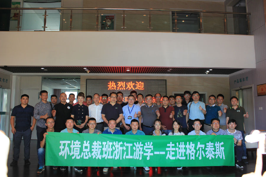 清華大學(xué)環(huán)境總裁班和格爾泰斯領(lǐng)導(dǎo)合影留念 以技術(shù)和質(zhì)量為本一直是格爾泰斯秉承的信念,以高標(biāo)準(zhǔn)、高質(zhì)量的產(chǎn)品回饋客戶的信任是我們不懈努力的方向。通過(guò)這次向清華大學(xué)環(huán)境總裁班的學(xué)員們?cè)敿?xì)介紹后,學(xué)員們對(duì)我司走紅色引領(lǐng)綠色發(fā)展之路給予充分的肯定,同時(shí),也希望公司不斷提高企業(yè)綜合實(shí)力,繼續(xù)發(fā)揚(yáng)自主創(chuàng)新的精神,為綠色環(huán)保做出更大的貢獻(xiàn)。 湖州市環(huán)保產(chǎn)業(yè)協(xié)會(huì)有關(guān)領(lǐng)導(dǎo)參加了上述活動(dòng)。